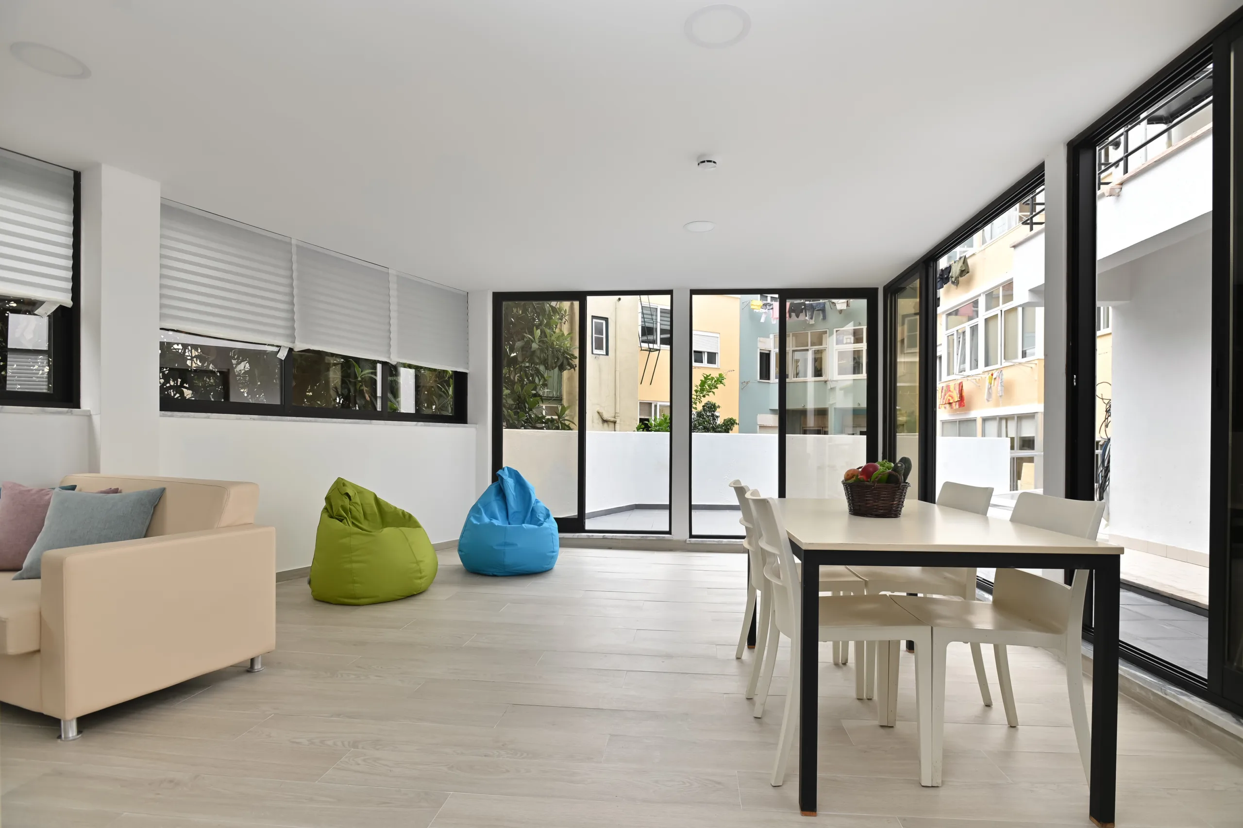 Quartos Individuais: Estes quartos são destinados a uma única pessoa e possuem casa de banho partilhada. Os residentes têm acesso a áreas comuns, como cozinha equipada, lavandaria e espaço social. Serviços adicionais incluem limpeza regular, protocolo hospitalar, serviço televisivo, vídeo-vigilância e Wi-Fi.
